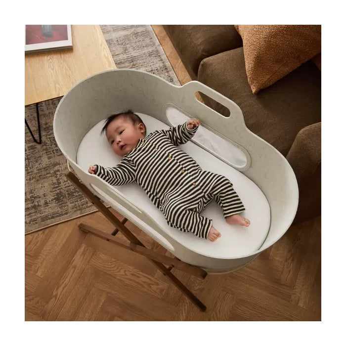 The SnuzBaskit Barley Moses Basket, paired with a luxurious walnut stand, offers a beautiful and practical sleep solution for your newborn. Crafted with care, the Barley Moses Basket combines a timeless design with modern functionality, ensuring your little one sleeps soundly from day one.