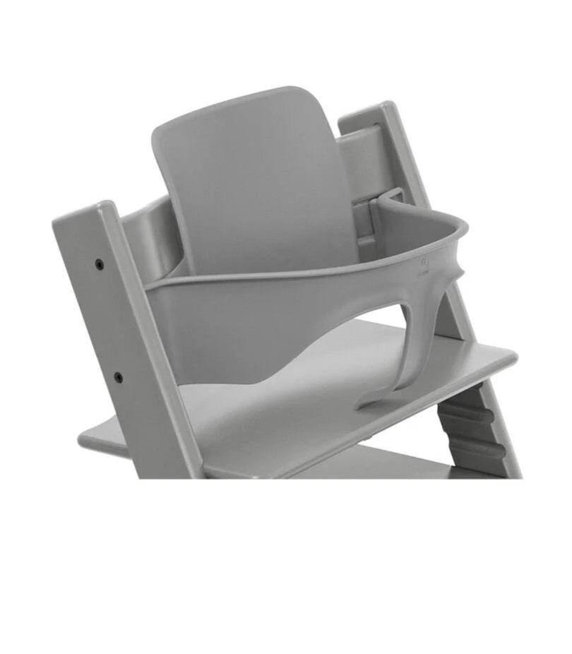This set is for weaning and includes the baby seat, harness and tray in shade Storm Grey. The high chair is not included